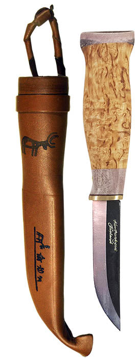 Mukana tuleva perinteinen nahkatuppi suojaa terää ja viimeistelee autenttisen kokonaisuuden. Tämä leuku on erinomainen valinta niin aktiiviselle eränkävijälle kuin arvostetuksi lahjaksi.