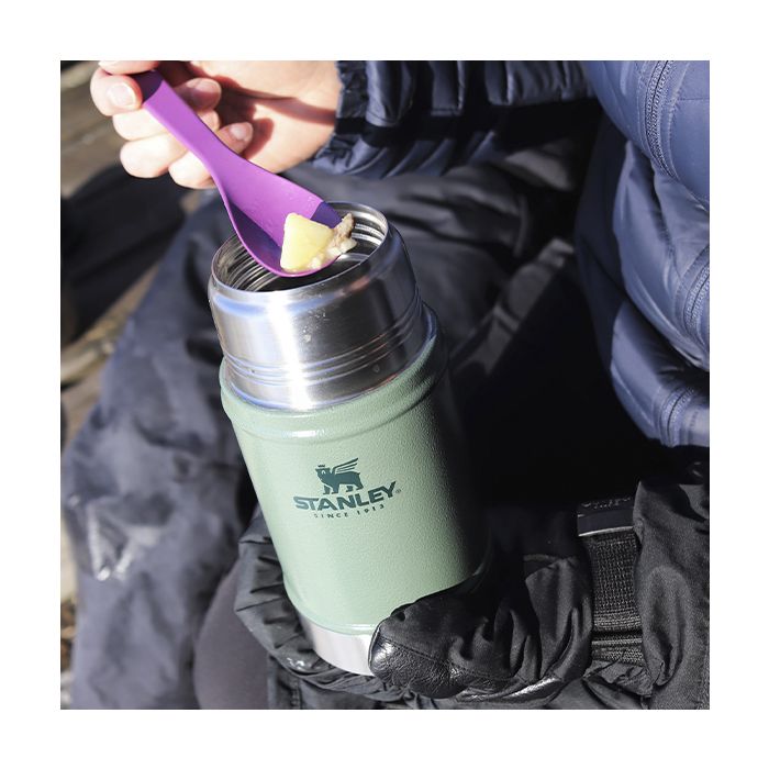 Stanleyn kahvaton 0,7 litran ruokatermos pitää ruoan kuumana noin 15 tuntia, ja viileänä noin 18 tuntia. Tyylikäs ruokatermos on täysin tiivis, joten voit kuljettaa vaikkapa valmiiksi lämmitetyn keiton päivän retkelle.